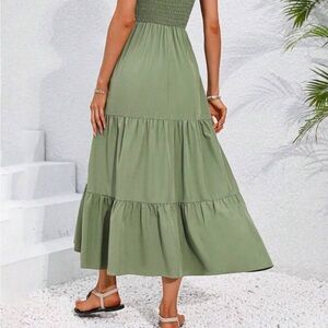 Green Tiered Smocked Maxi dress for Casual Wear 8127