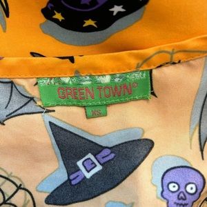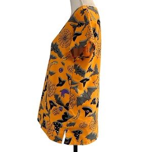 Green Town Halloween Medical Nursing Foil Scrub Uniform Top Women’s SZ XS Fall