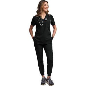 *FUNCTIONAL YET FASHIONABLE: If you are looking to add fashion and functionality to your uniform collection, this scrub set is just for you! Pairs perfectly with joggers, the cute & trendy scrub top can be worn both tucked and untucked to add versatility to your look. Dress this jogger pant up or down, perfect for working out or lounging around on your days off. The ultimate uniform for all women healthcare professionals, the super-soft construction of this scrub set will make it your new go-to!