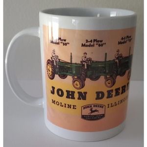 Green tractor 15 Ounce Sublimated Coffee Mug. Has a 1950's advertisement with a model 50 60 and 70 Green Tractors. Quality 15 ounce Ceramic Coffee Mug.