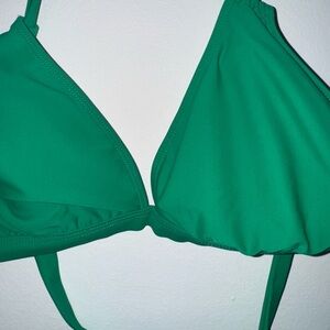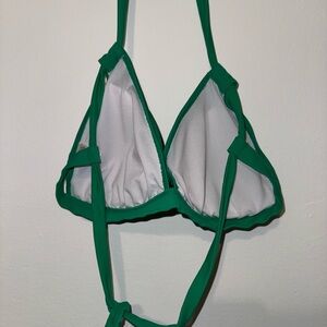 Stylish green triangle bikini top and bottom. Perfect for beach days.
