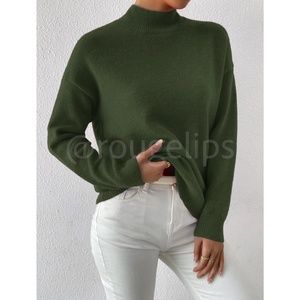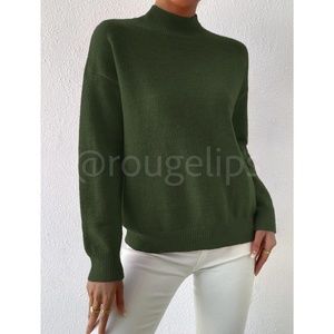 Green Turtleneck Knit Pullover Sweater Long Sleeve