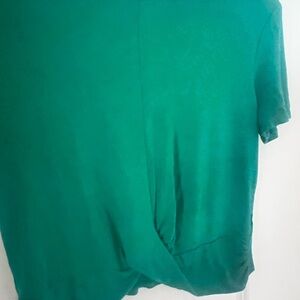 Chic emerald top with twist front. Perfect for casual outings.