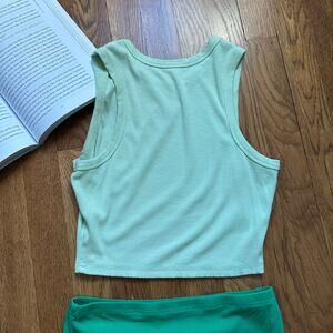 Green Two Piece Crew Neck Ribbed Tank Top Bodycon Slit Midi Skirt Set. Excellent gently used condition. k31
