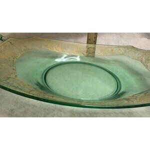 Green Uranium Depression Glass Handled Tray