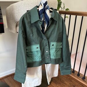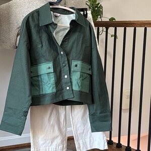 Stylish green utility jacket with a classic design. Perfect for versatile wear.