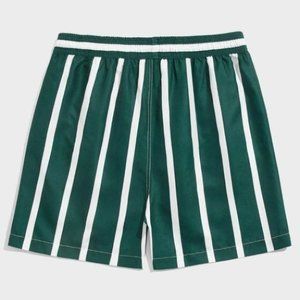 Green Vacation Style Striped Men's Swim Trunks