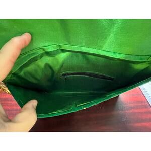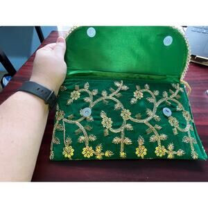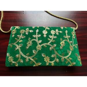 Green Velvet Asian Clutch Handbag Gold Embroidered Sequins NWOT