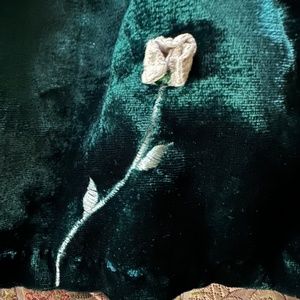 Adorable Green Velvet baby dress with ribbon & embroidered flowers on skirt , puffed sleeves. Sz 6 mo.