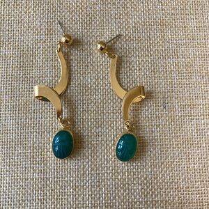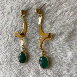 It is for pierced ears and it approximately drops at 2-1/4”.
