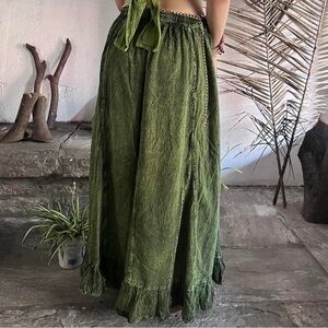 GREEN SKIRT Forest Greet Embroidery Maxi Skirt, perfect for embracing those boho hippie vibes! This stunning skirt features pleated boarder that adds a touch of elegance, while the maxi length offers a chic and comfortable fit.