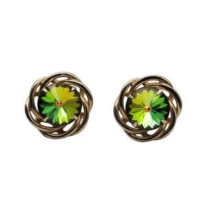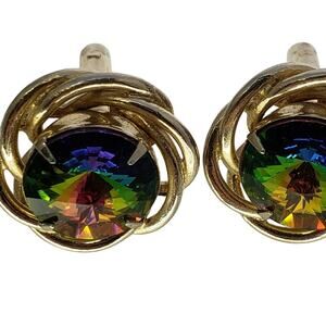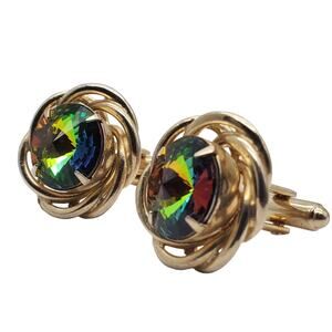 Green Watermelon Rivoli Cufflinks Dante Gold Tone Cuff Links Vintage 1960s MCM