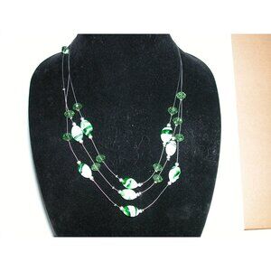Green & White Glass Bead Multi-Strand Necklace With Adjustable Silver Lobster Cl
