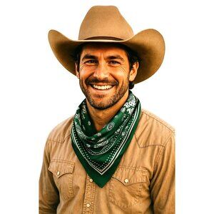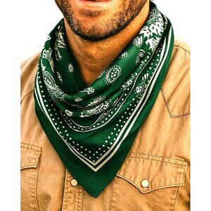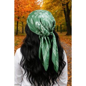 Green White Paisley Square Scarf Bandana Print Silk Feel Accessory Neck Head Wra
