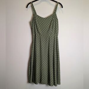 Green White Polka Dot Fit And Flare Cami Spaghetti Strap Dress Size Small