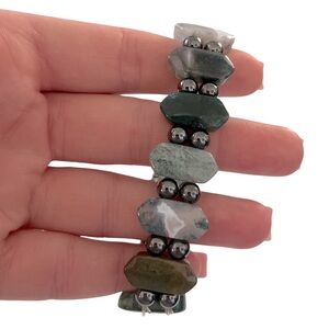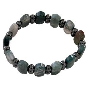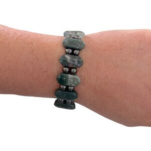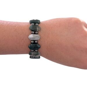 Elegant bracelet featuring green and white stones, perfect for adding a touch of nature-inspired beauty to any outfit.
