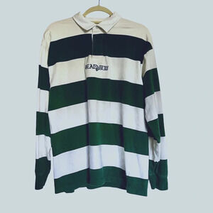 Green White Stripes Long Sleeve Rugby Shirt Size Large