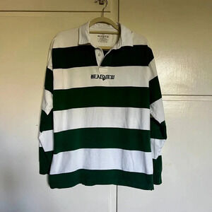 Green White Stripes Long Sleeve Rugby Shirt Size Large Blokecore