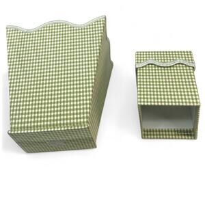 Green & White Upholstered Waste Paper Basket Tissue Box Set, Legacy Homes