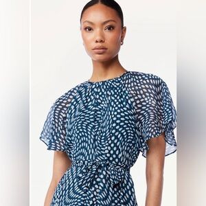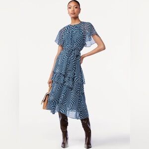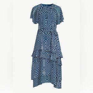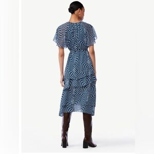 Scoop Ruffle raglan Sleeve Tie Waist Midi swirl dotted tiered Dress size small new
