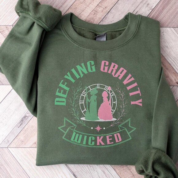 Stay cozy and stylish with this green sweater featuring a 'Wicked' graphic design. Perfect for casual outings. Unisex sizing. Relaxed, oversized fit. NWT