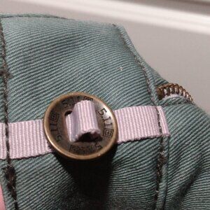 Great condition. Good, sturdy material. Size 14 regular. The color in the close-up pictures is washed out and not the best depiction of the actual shade of green.