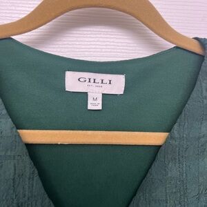 This sweet cropped blouse from Gilli features a sophisticated wrap design in a rich green hue. The long sleeves and peplum hem is ideal for high waisted bottoms and the gathered cuffs and waistband enhance its feminine silhouette.
