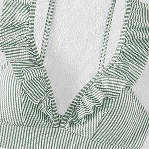 Green Women's Swim Summer Beach Striped Ruffle Trim Bikini Swimsuit