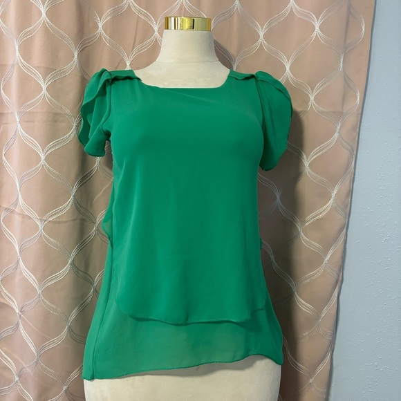 Elegant green women's blouse with stylish puff sleeves. Perfect for any occasion.