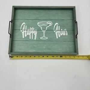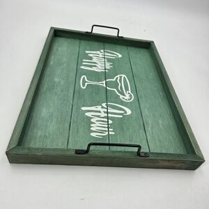 Charming green wash wooden serving tray with 'Happy Hour' design. Perfect for entertaining. New in box and in excellent condition!