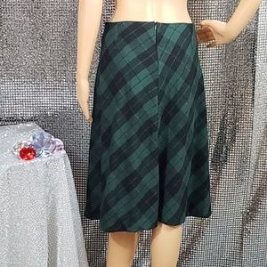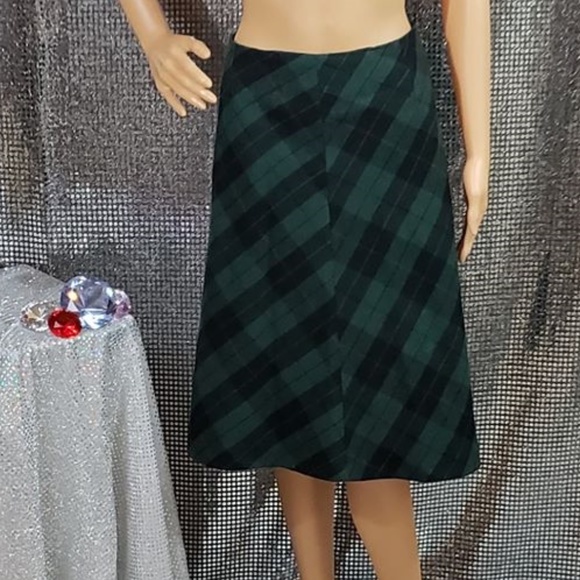 Heavyweight green tartan plaid skirt is perfect for when the temperature drops. This zip-up looks great with sheer hose, kitten heels, and a fun blouse. Fun with gold jewelry or classic string of pearls. Like new, and as always, price is negotiable. Check out our closet for more stellar bargains. Happy Poshing and thanks for shopping. Sparkle On!
