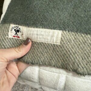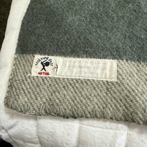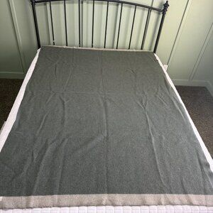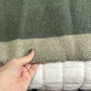 Green Wool Throw Blanket Gray Herringbone Border Heavy Warm Cozy Twin Size Thick
