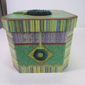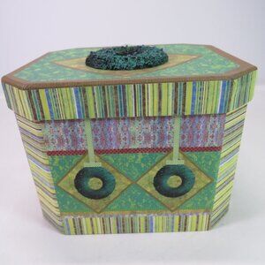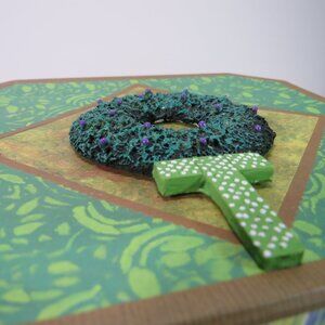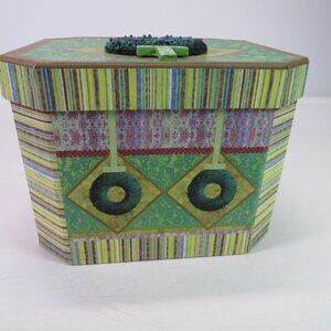 Green Wreath Rectangle Gift Box w Stripes & Wreath as bow