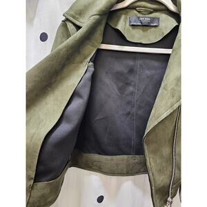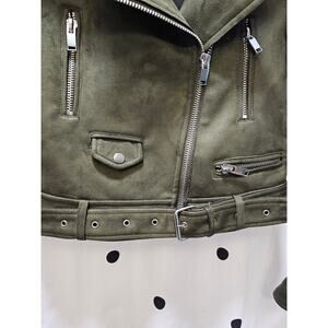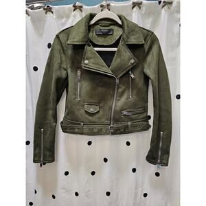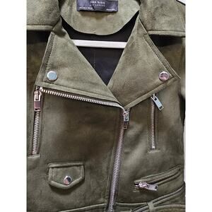 Green Zara Basic Outerwear suede moto jacket with zippers and pockets small