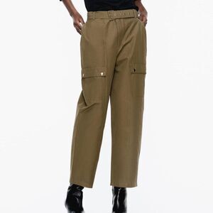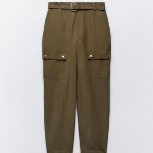 Green Zara High-Waisted Belted Cargo Trouser Pants (NWT)