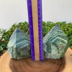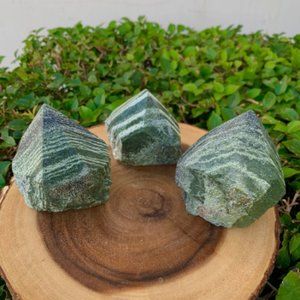 This listing is for one green zebra Jasper half polished point. Sizes vary, the average size is 3-4 inches tall and about 3 inches wide.