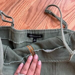 Stylish green dress with a zip-front design. Features thin straps for a chic look.