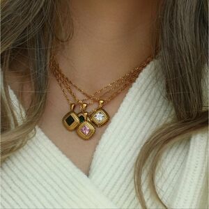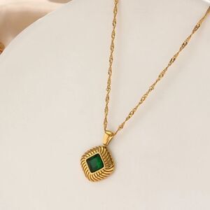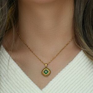 Green Zircon Vintage Diamond Textured Pendant 18k Gold Plated Stainless Steel Necklace....also have matching earrings in a seperate listing