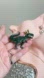 Unique dinosaur brooch with sparkling green stones. Topped with a gold crown. Adds a playful touch to any outfit.
