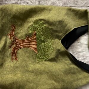 Stylish green and black bag with tree embroidery. Perfect for casual outings.