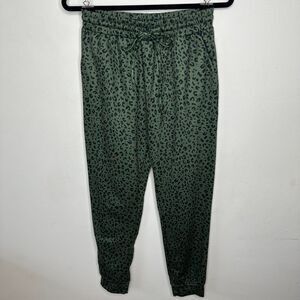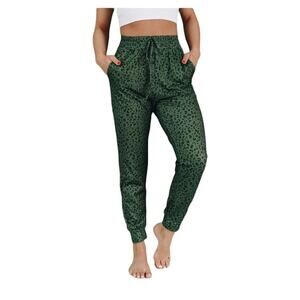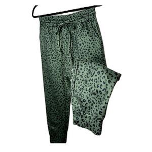 Green and Black Leopard Print Relaxed Fit Draw String Joggers Sweat Pants Medium