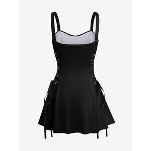 Green and Black Octopus Printed Lace-up Mini Dress