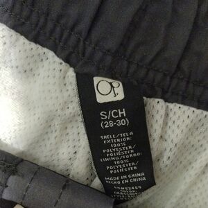 Men's Swim shorts with green, black and grey stripes. Perfect for beach or pool days.