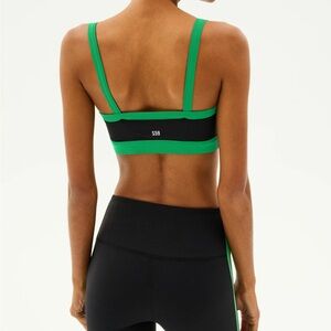 Experience comfort and style with this green and black sports bra. Perfect for workouts or casual wear.