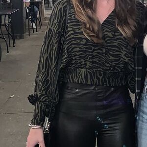 Do+Be Small Top striking green and black zebra print, offering a bold and stylish look.