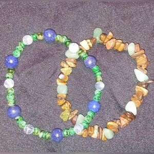 This elegant bracelet set features a stunning combination of green and brown with gray tones, perfect for adding a touch of nature-inspired beauty to any outfit. Size 7 inch paired with size 7.5 inch Made with stretchy elastic!
