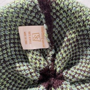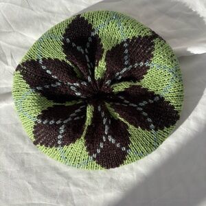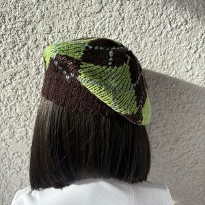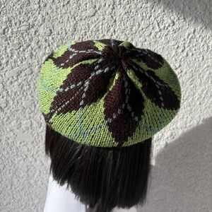 The green and brown knit design adds a pop of color to any outfit, making it a versatile piece for your wardrobe. This beret is in used condition, but still in great shape with no visible flaws. It has been well-maintained and is ready to be worn and loved by its new owner. Whether you're running errands or meeting friends for brunch, this beret will elevate your look effortlessly. Don't miss out on adding this chic accessory to your collection and make a fashion statement wherever you go.