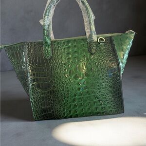 NWT Stylish handbag featuring a crocodile pattern in green and cream. Crossbody strap include. Perfect for adding a touch of elegance to any outfit.