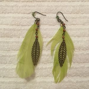 Green and Gold Feather Earrings