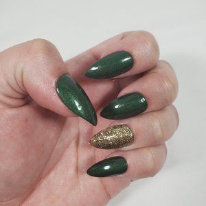 Green & Gold with Red Peekaboo Hand Painted Customizable Press On Nails